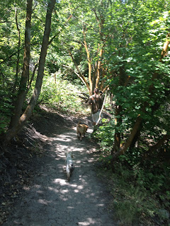 I forgot the leashes so Marshall ran about 10 minutes back up to grab them and while me and the dogs were slowly making our way down bikers were coming up and we have tried hard to teach the dogs to stay close and out of their way. This one biker stopped mid ride and told me we looked like a family of ducks. I looked behind me and we were all walking in a perfect row of tallest to smallest.